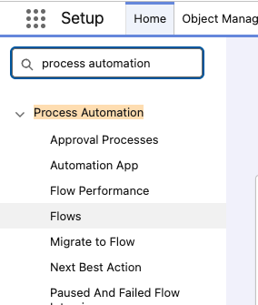 In Salesforce Setup, use Quick Find to search for Flows.