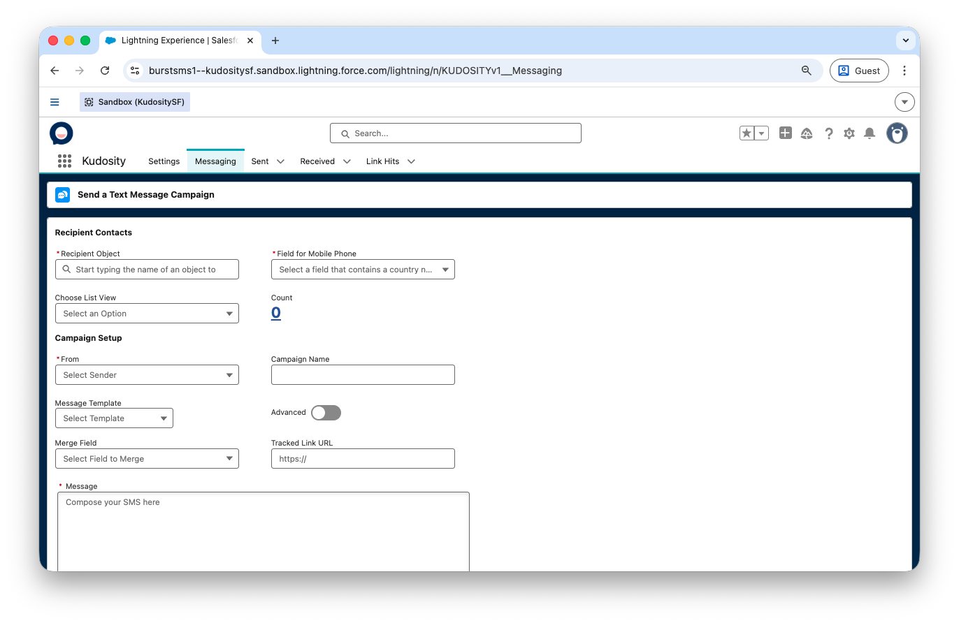 From the Messaging tab, you can send SMS to any mobile number associated with Salesforce objects.