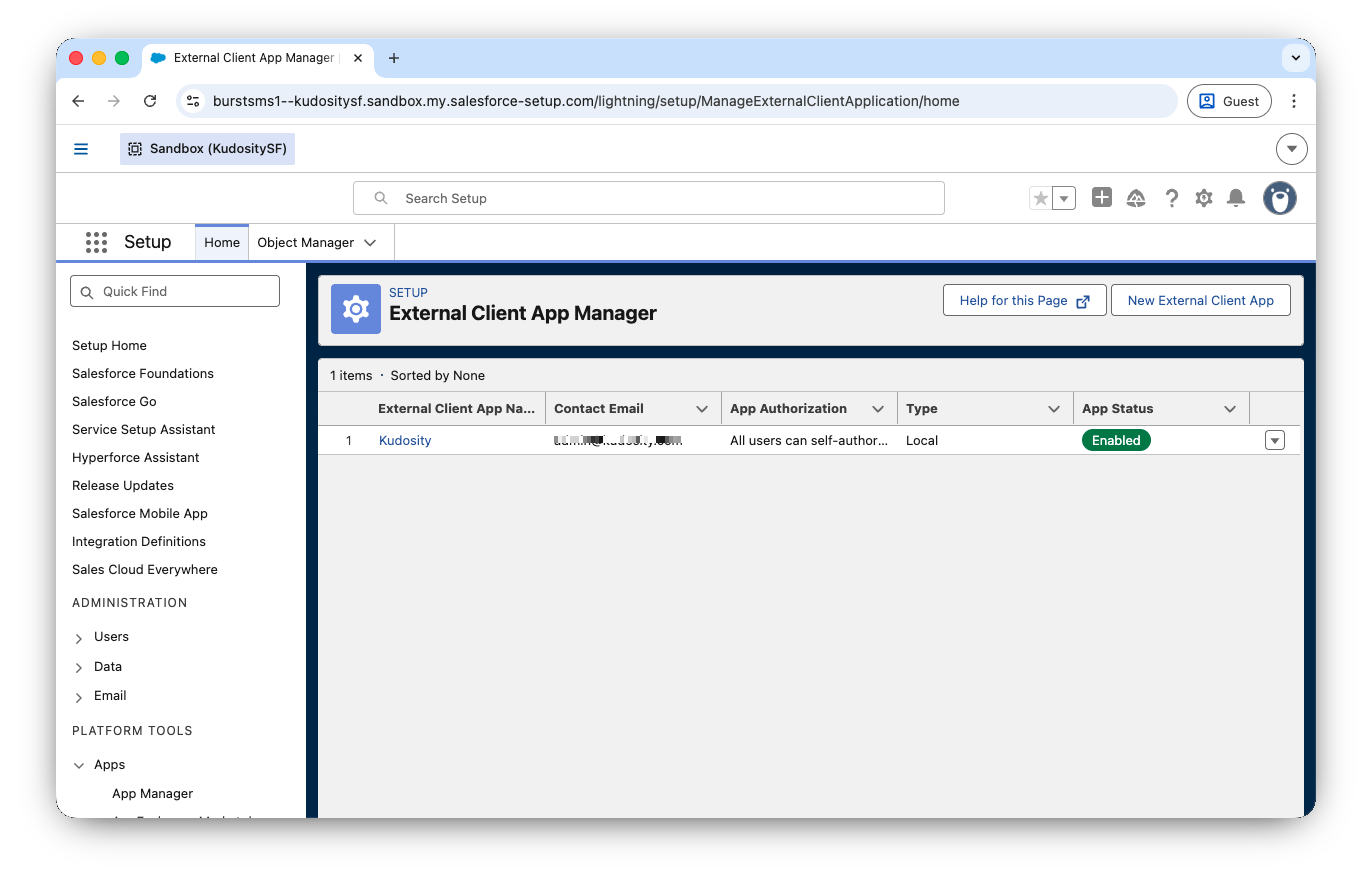 Click Open External Client App Manager — this opens Salesforce Setup in a new tab.