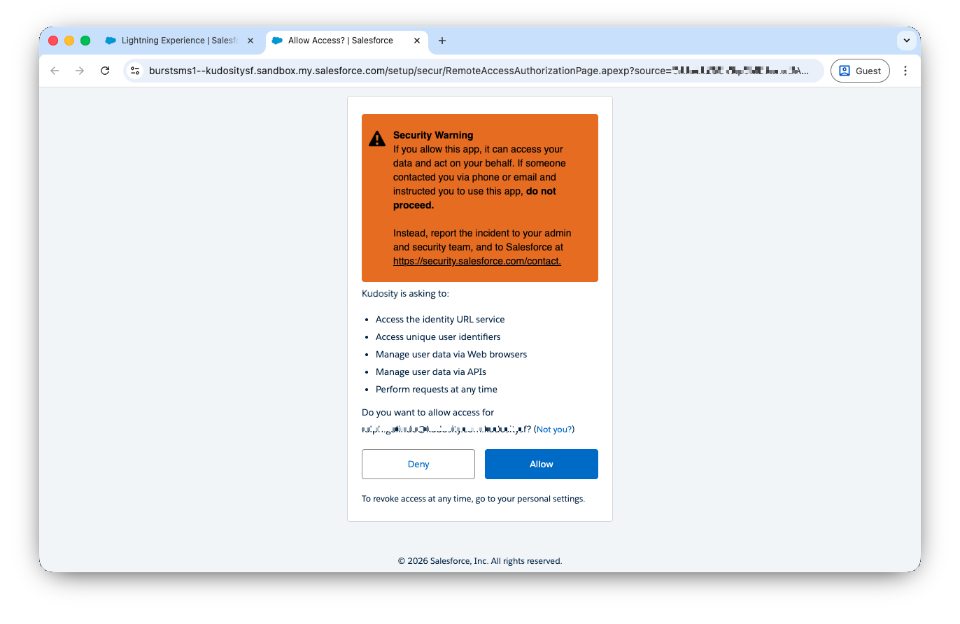 You will be redirected to a Salesforce OAuth consent page — click Allow.