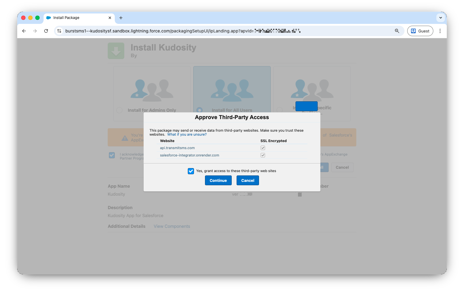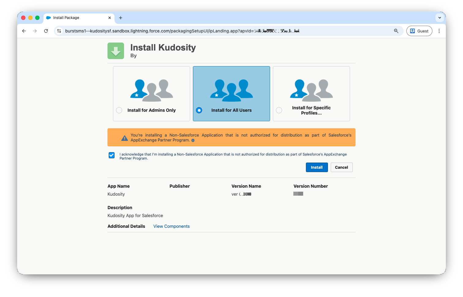 Acknowledge the non-Salesforce AppExchange warning and click Install.
