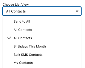 Choose List View / Campaign — refine targeting by selecting a list view or campaign. Views can be filtered to create segmented lists.