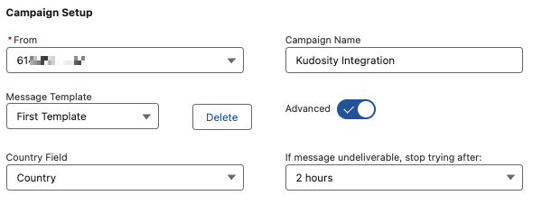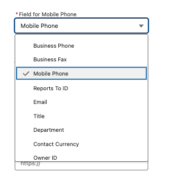 Field for Mobile Number — select the field within your object that holds the mobile number.